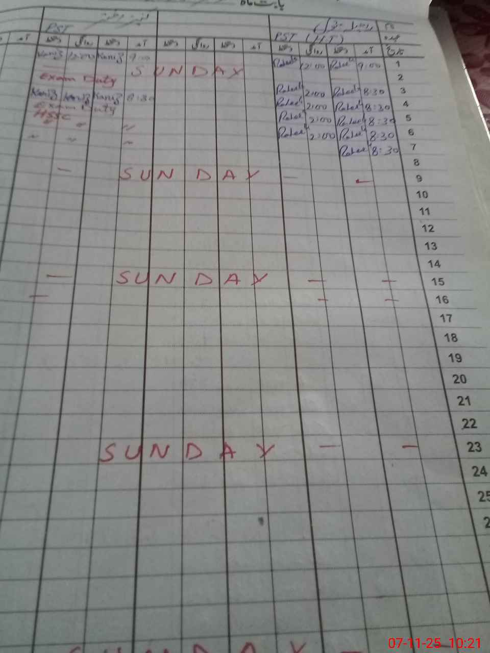 | 37**** | Ka**** Ak**** | ESE Arts | Regular | 0 | 0 | 0 | 0 | 0 | 0 | 0 | 0 | 0 | Exam Duty |