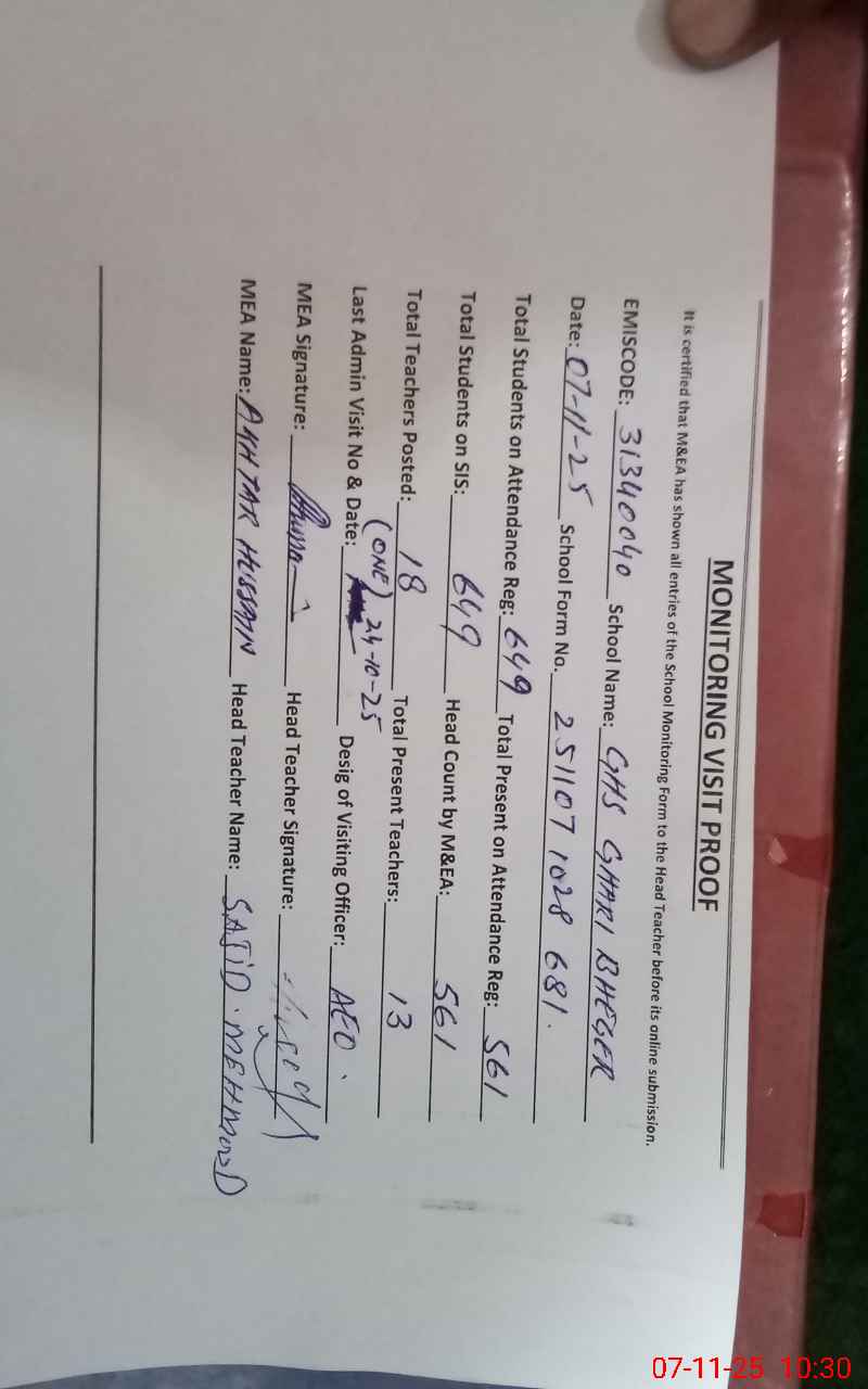 | EMIS Code: 31340040 | Name of School: GHS GHARI BHGER | |||