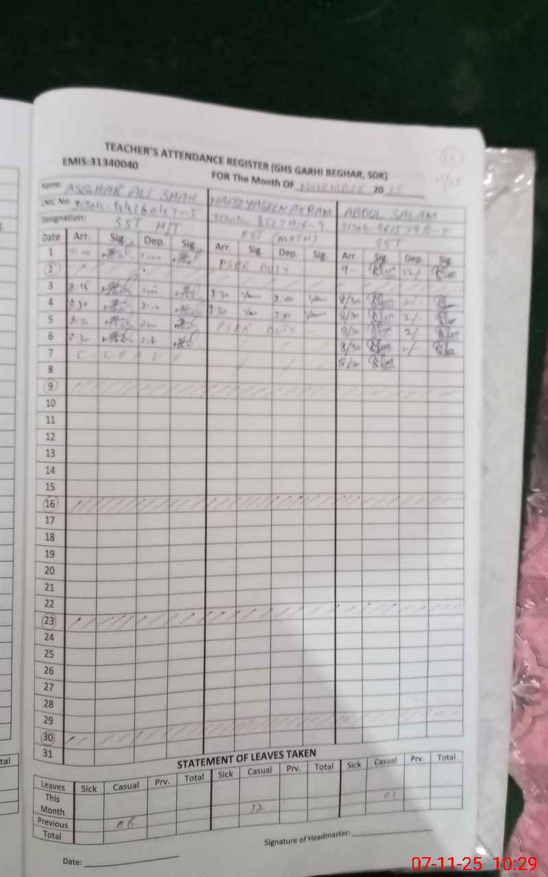 | Name: As**** Al**** Sh**** Designation: (School Headmaster's/Headmistress's) S.S E Phone/Cell Number: 03**** |