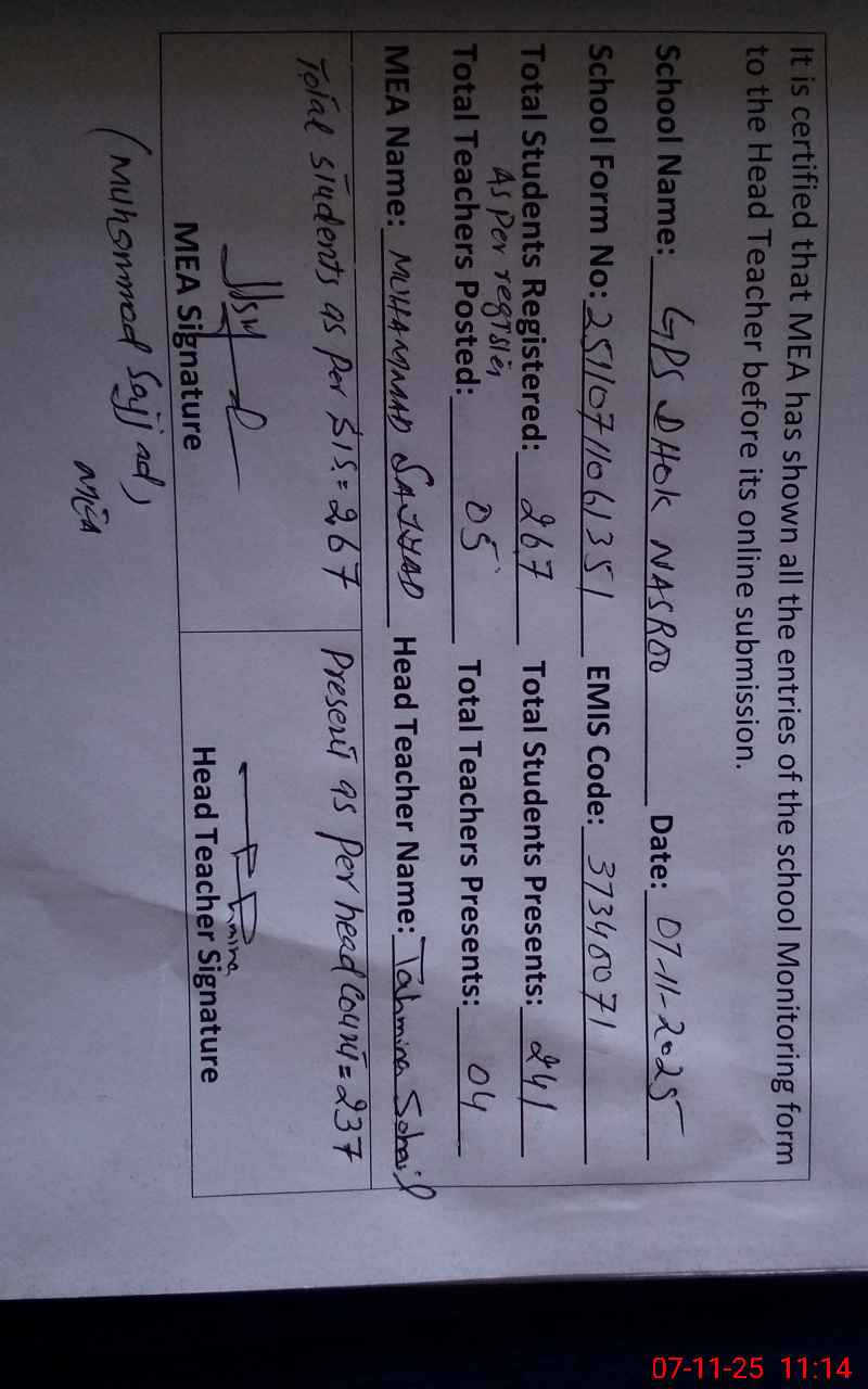 | EMIS Code: 37340071 | Name of School: GPS DHOKE NASROO | |||