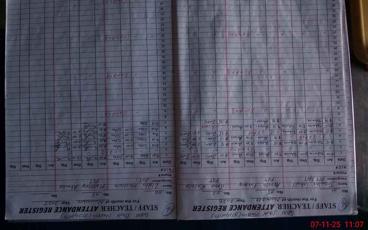 | CNIC | Full Name | Designation | R/C | Absence During Last Calender Month |