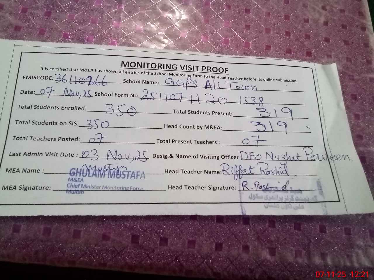 | EMIS Code: 36110266 | Name of School: GGPS ALI TOWN BUDHLA ROAD MULTAN | |||