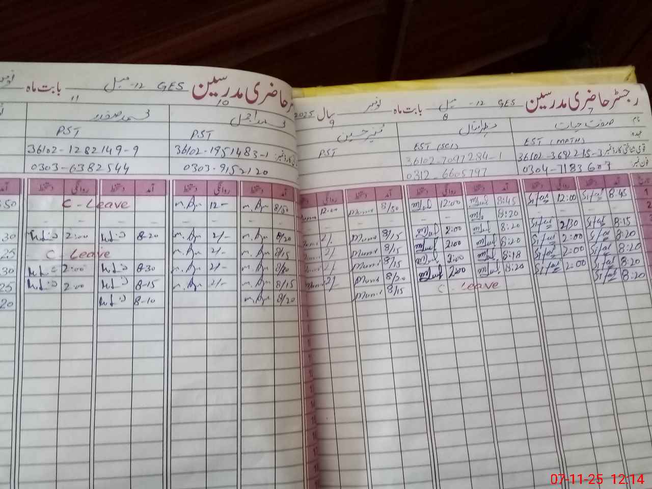 | CNIC | Full Name | Designation | R/C | Absence During Last Calender Month |