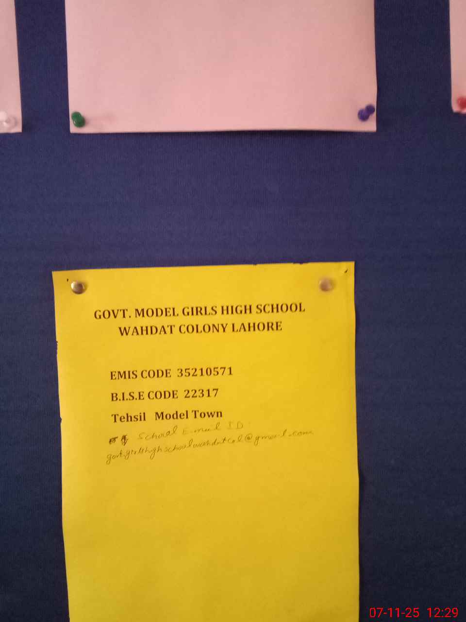 | EMIS Code: 35210571 | Name of School: GGHS MODEL WAHDAT COLONY | |||
