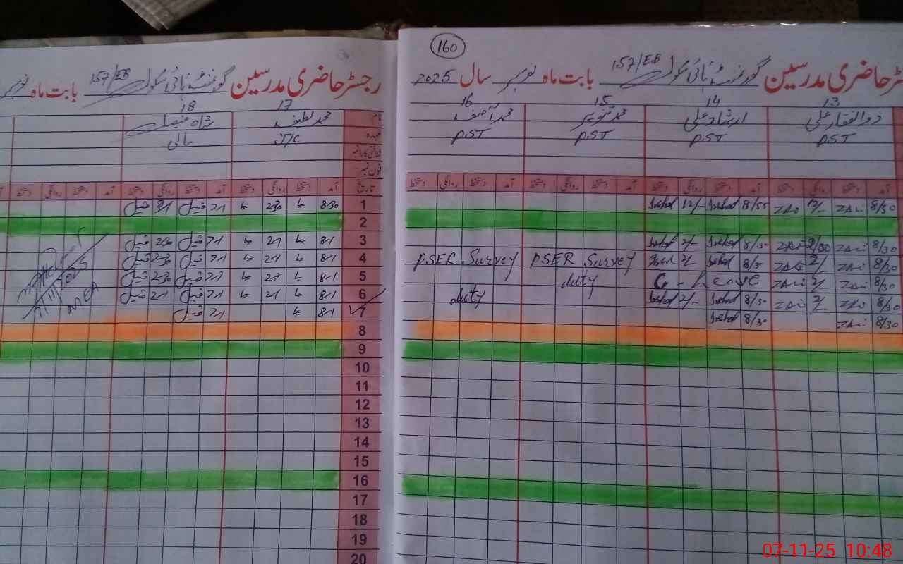 | CNIC | Full Name | Designation | R/C | Absence During Last Calender Month |