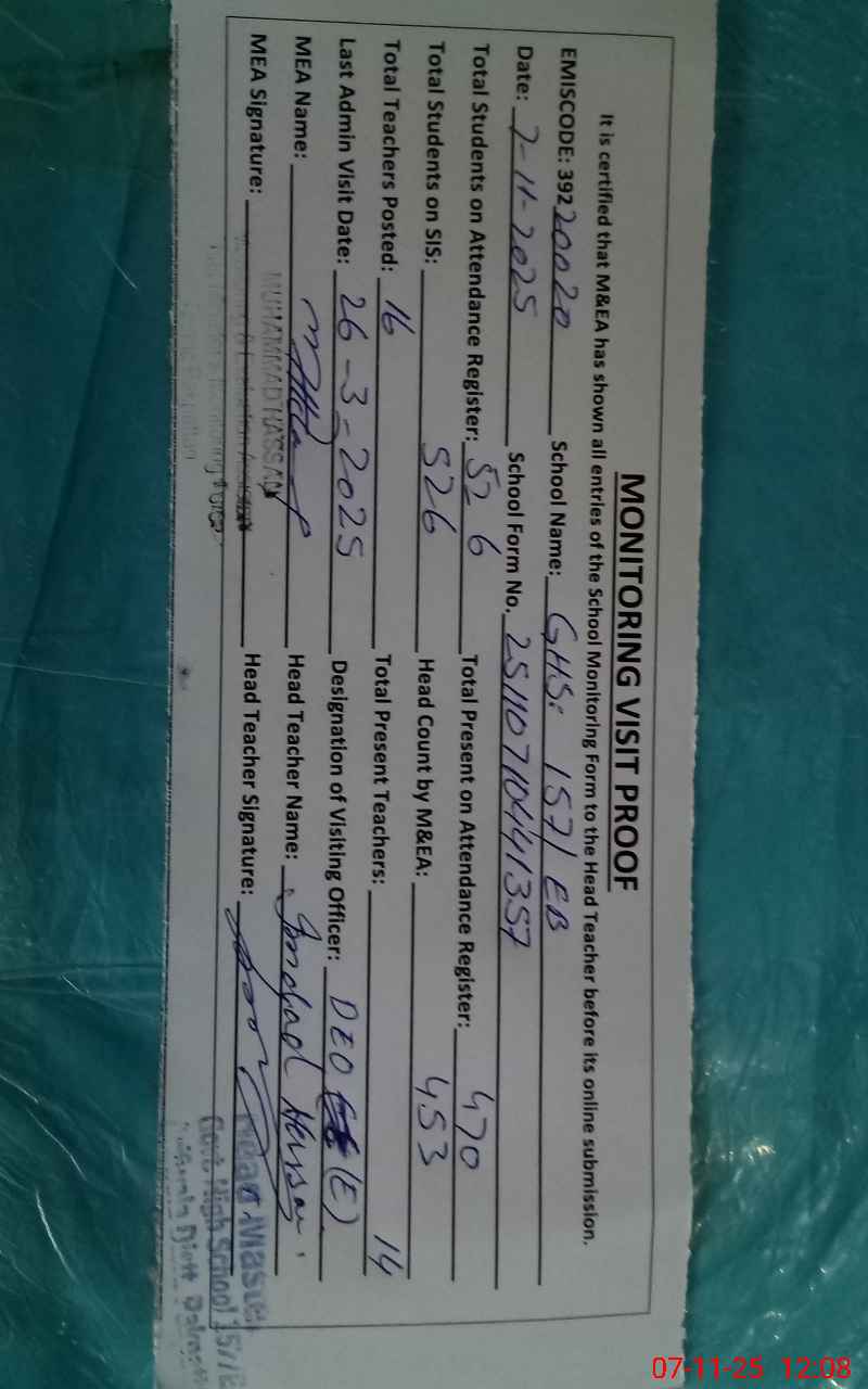 | EMIS Code: 39220020 | Name of School: GHS 157/EB | |||