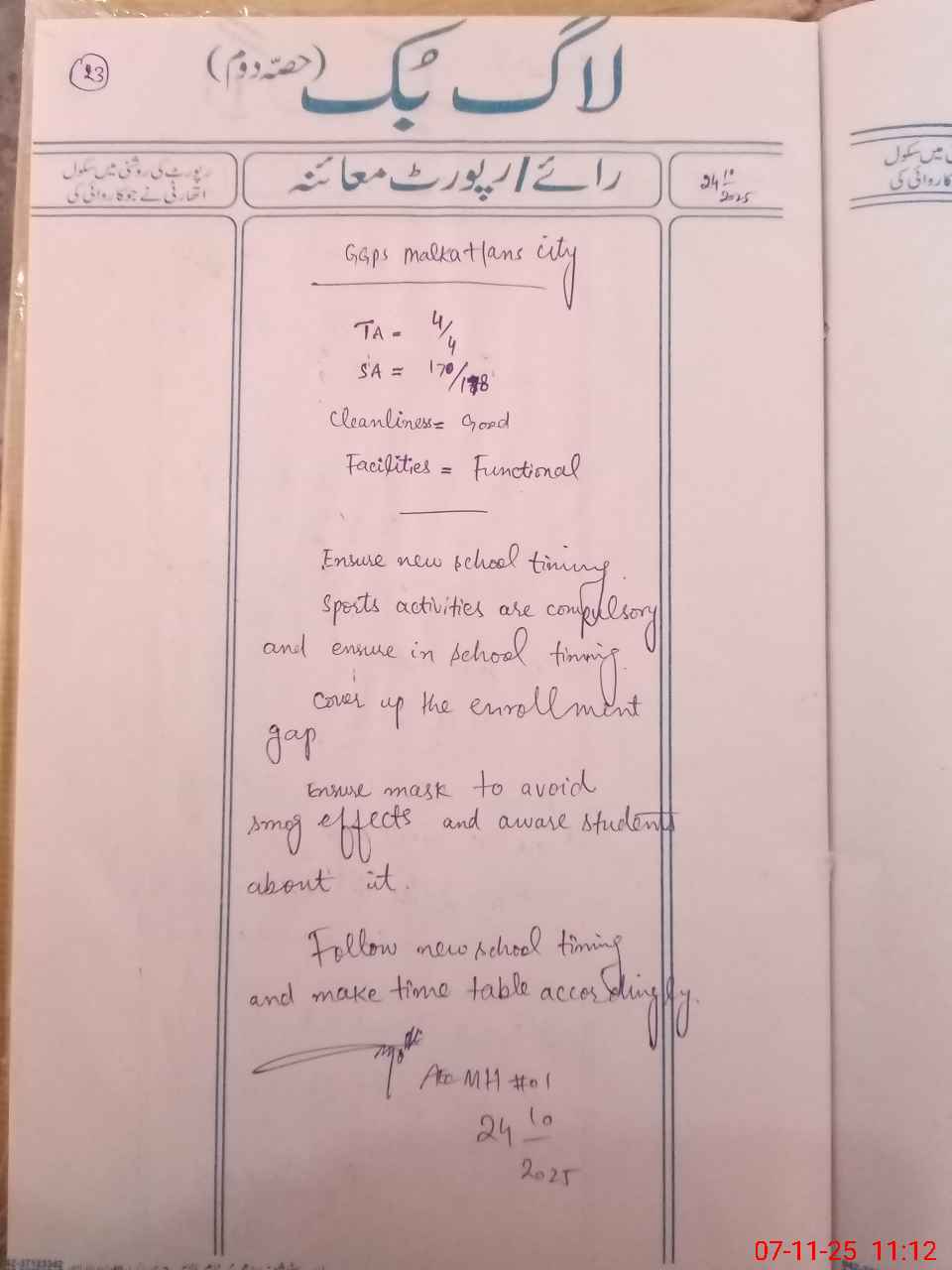 | Certified that this School was Inspected by the Undersigned MEA/DMO Today and the Information Stated Above is as Per Record. | |||||