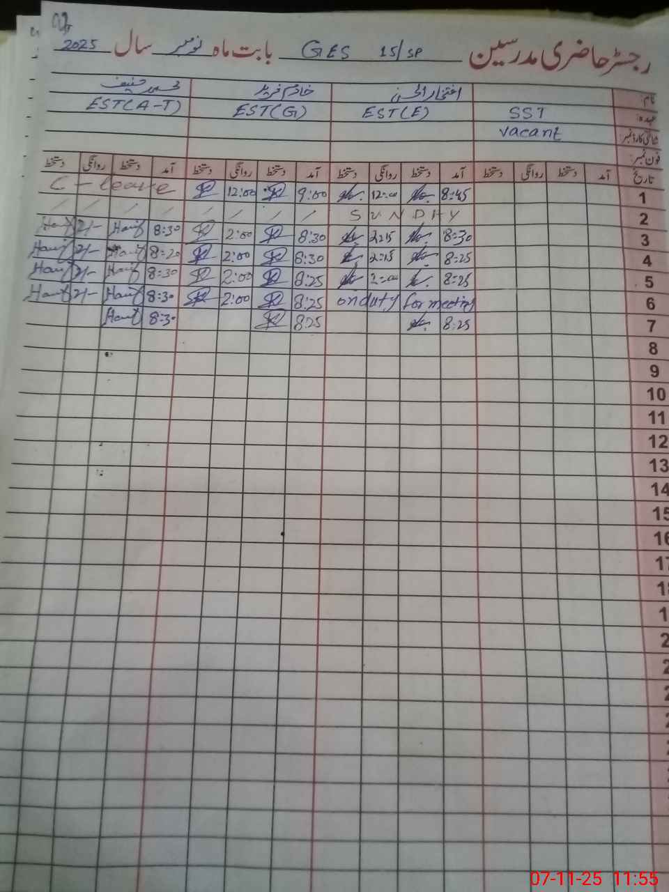 | CNIC | Full Name | Designation | R/C | Absence During Last Calender Month |