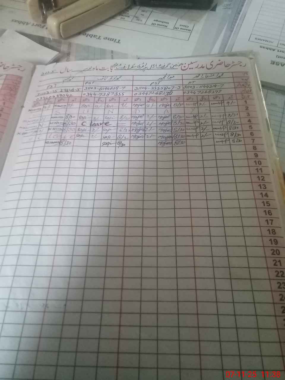| Name: MU**** IF**** Designation: (School Headmaster's/Headmistress's) PST Phone/Cell Number: 03**** |