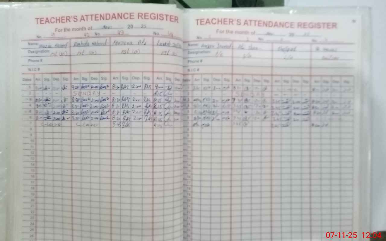 | Attendance Register | Head Teacher | MEA with School | Visit Proof |