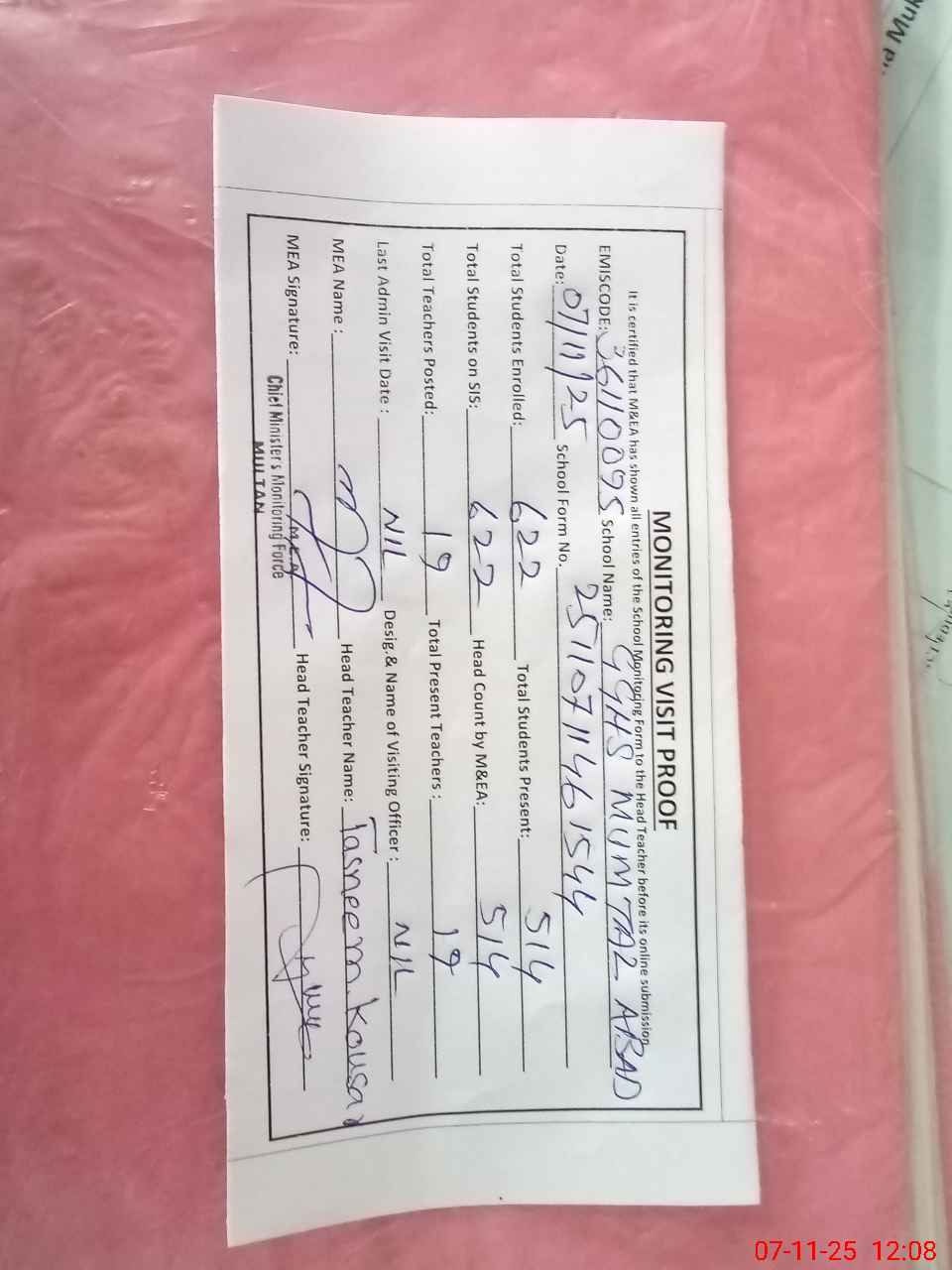 | EMIS Code: 36110095 | Name of School: GGHS MC MUMTAZ ABAD MULTAN | |||