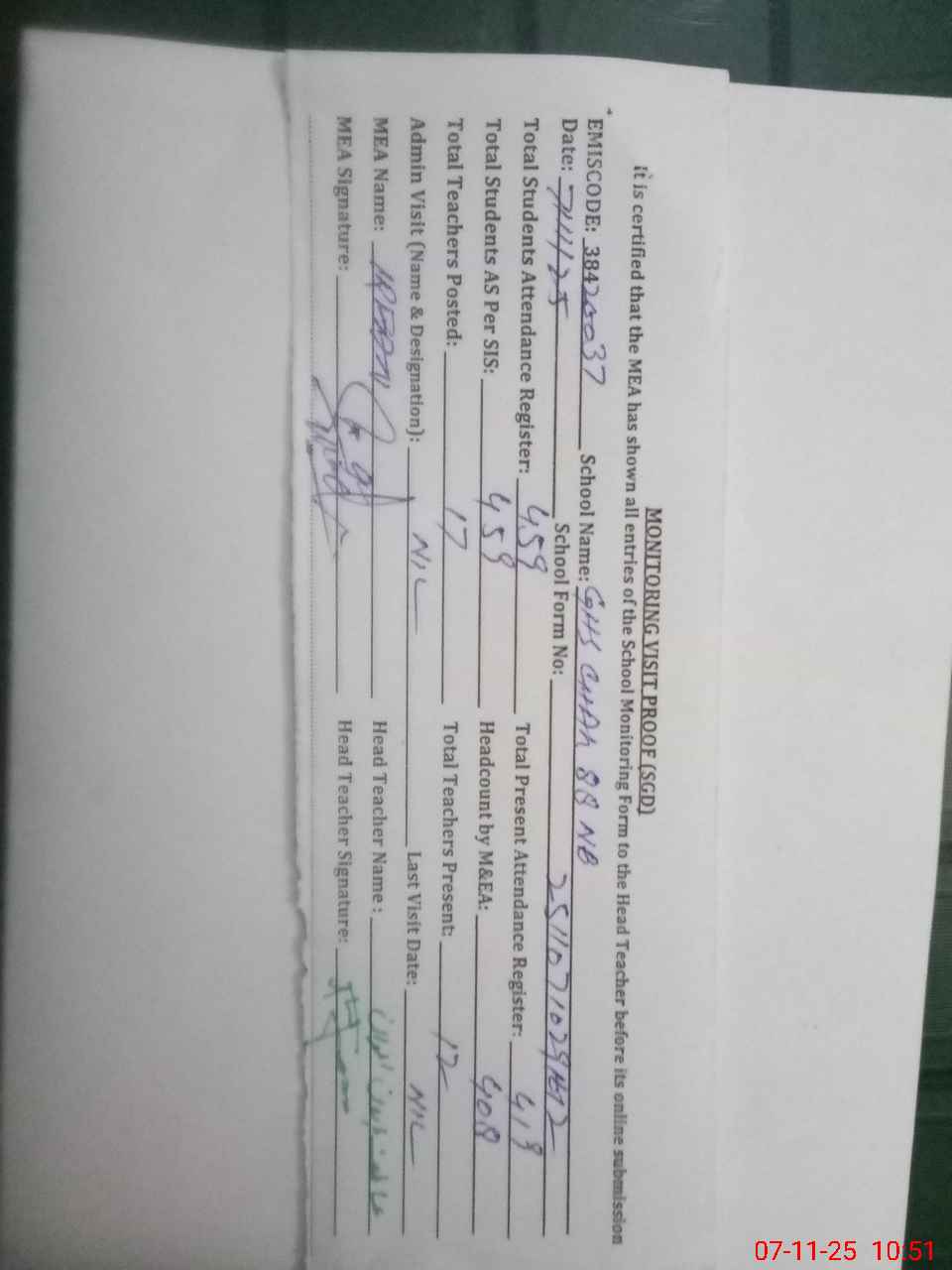 | EMIS Code: 38420037 | Name of School: GHS CHAK NO.88 NB | |||