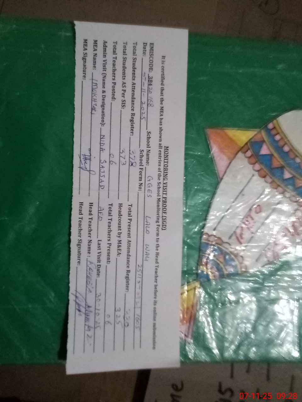 | EMIS Code: 38420168 | Name of School: GGES LALO WALI | |||