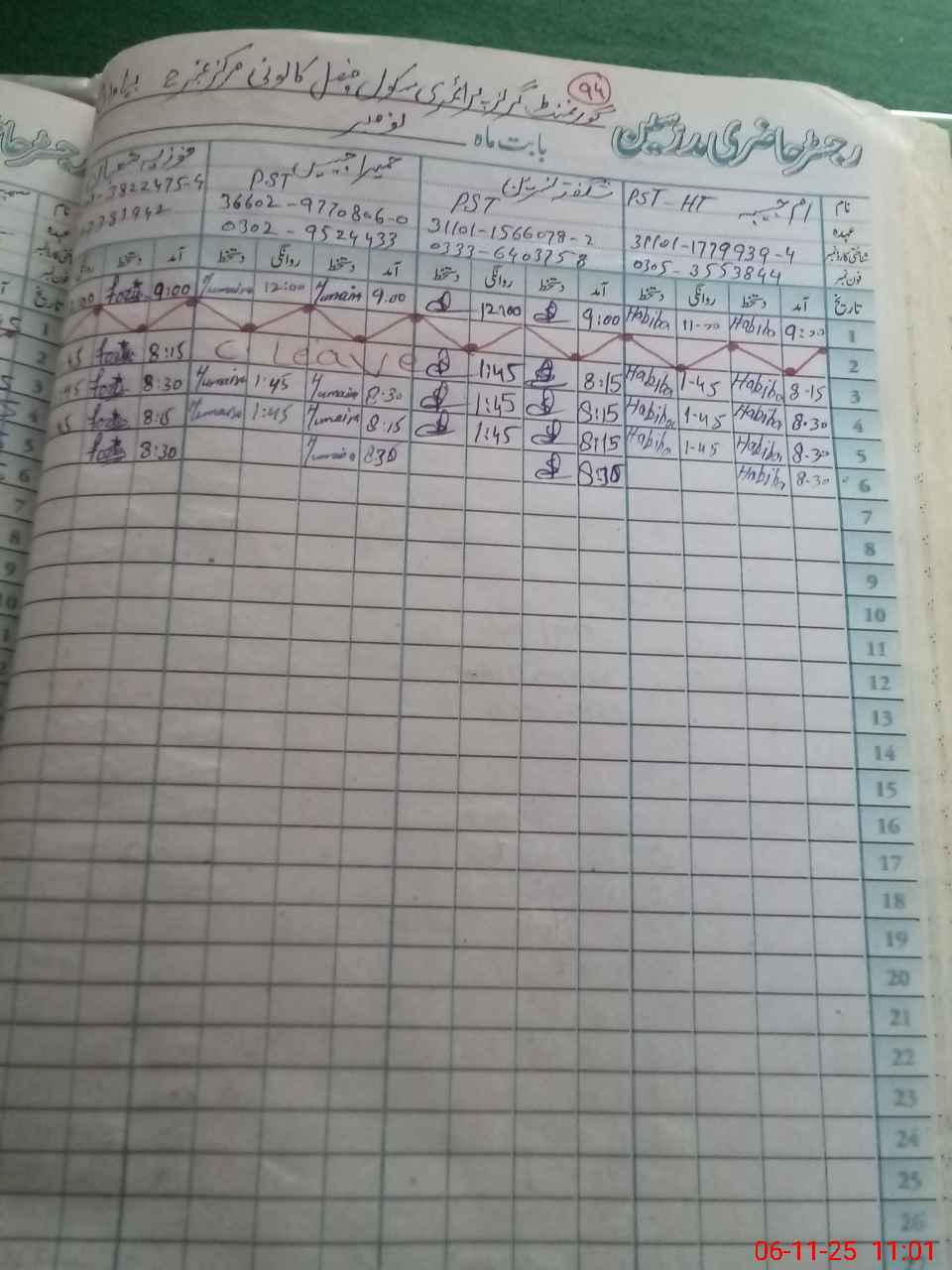 | Name: Um**** Ha**** Designation: (School Headmaster's/Headmistress's) PST Phone/Cell Number: 03**** |