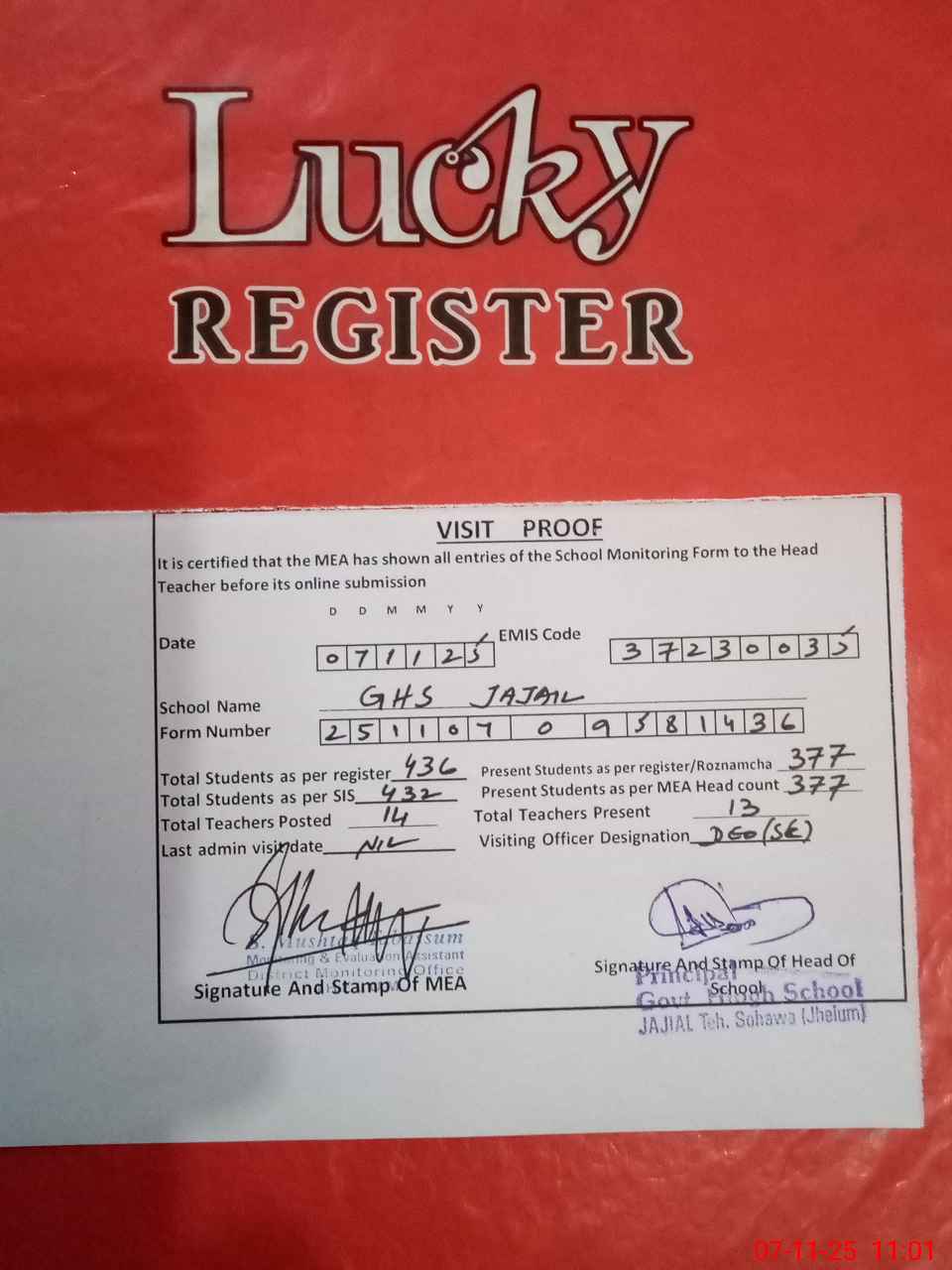 | EMIS Code: 37230035 | Name of School: GHS JAJIAL | |||