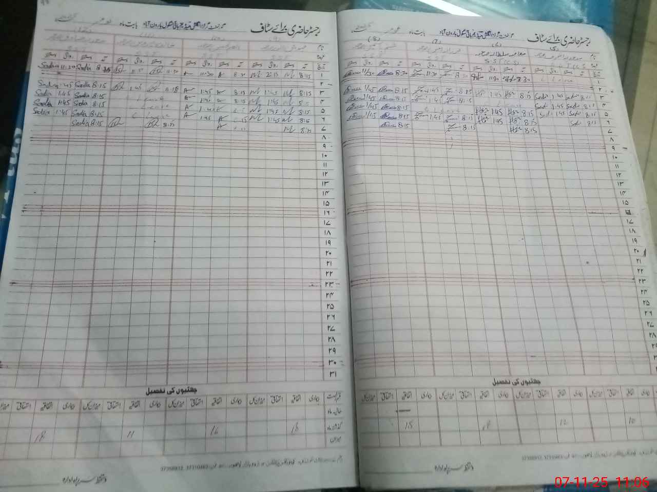 | CNIC | Full Name | Designation | R/C | Absence During Last Calender Month |