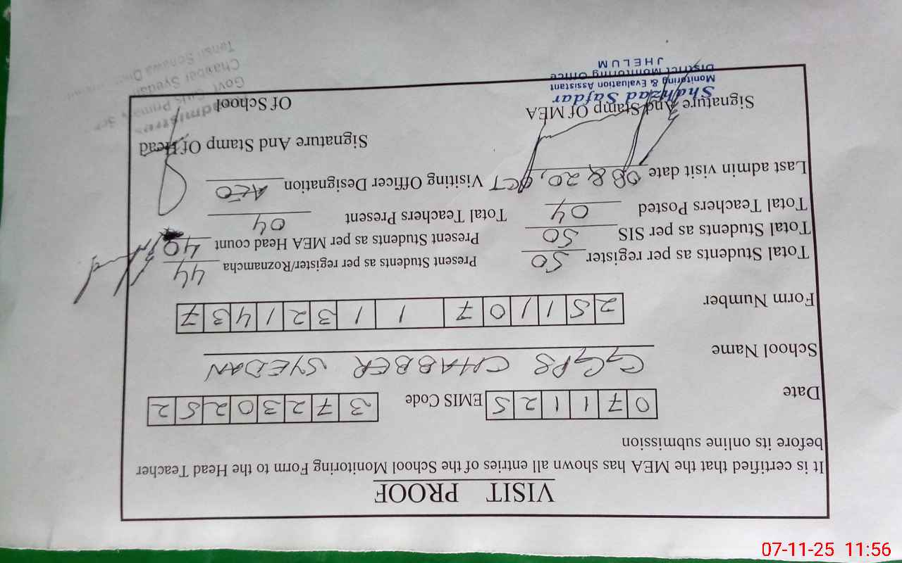 | EMIS Code: 37230252 | Name of School: GGPS CHABBER SYEDAN | |||