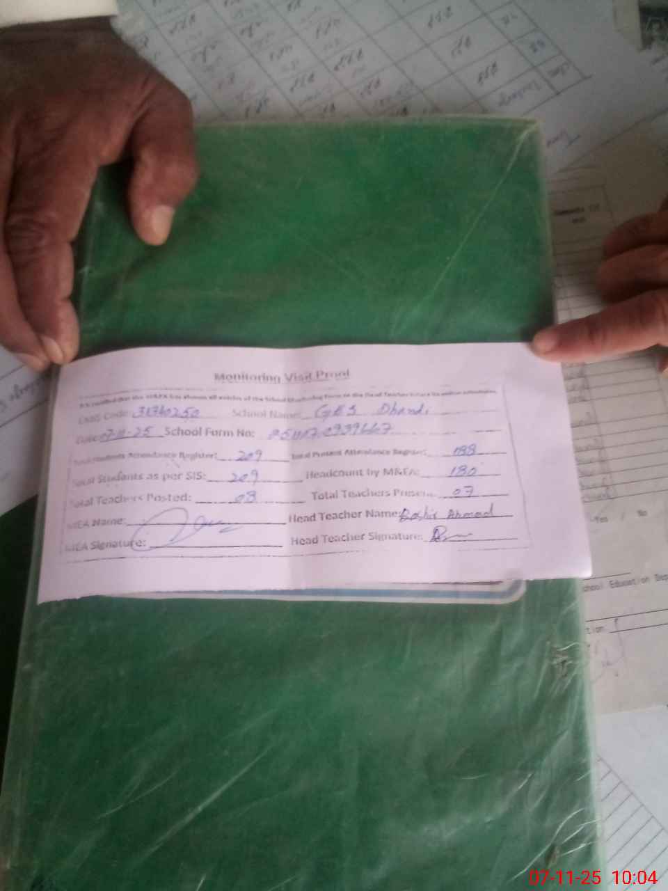 | Attendance Register | Head Teacher | MEA with School | Visit Proof |