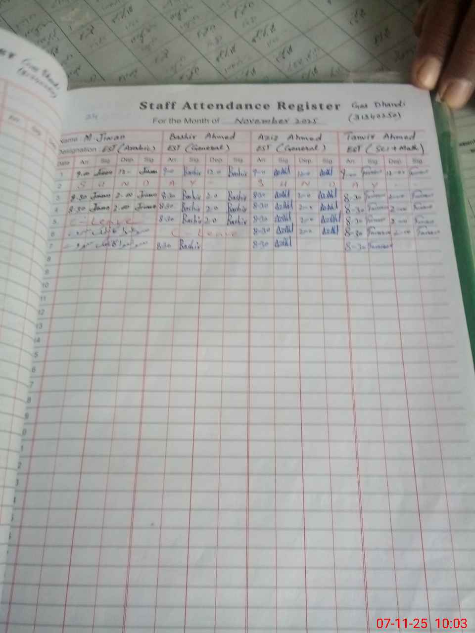 | CNIC | Full Name | Designation | R/C | Absence During Last Calender Month |