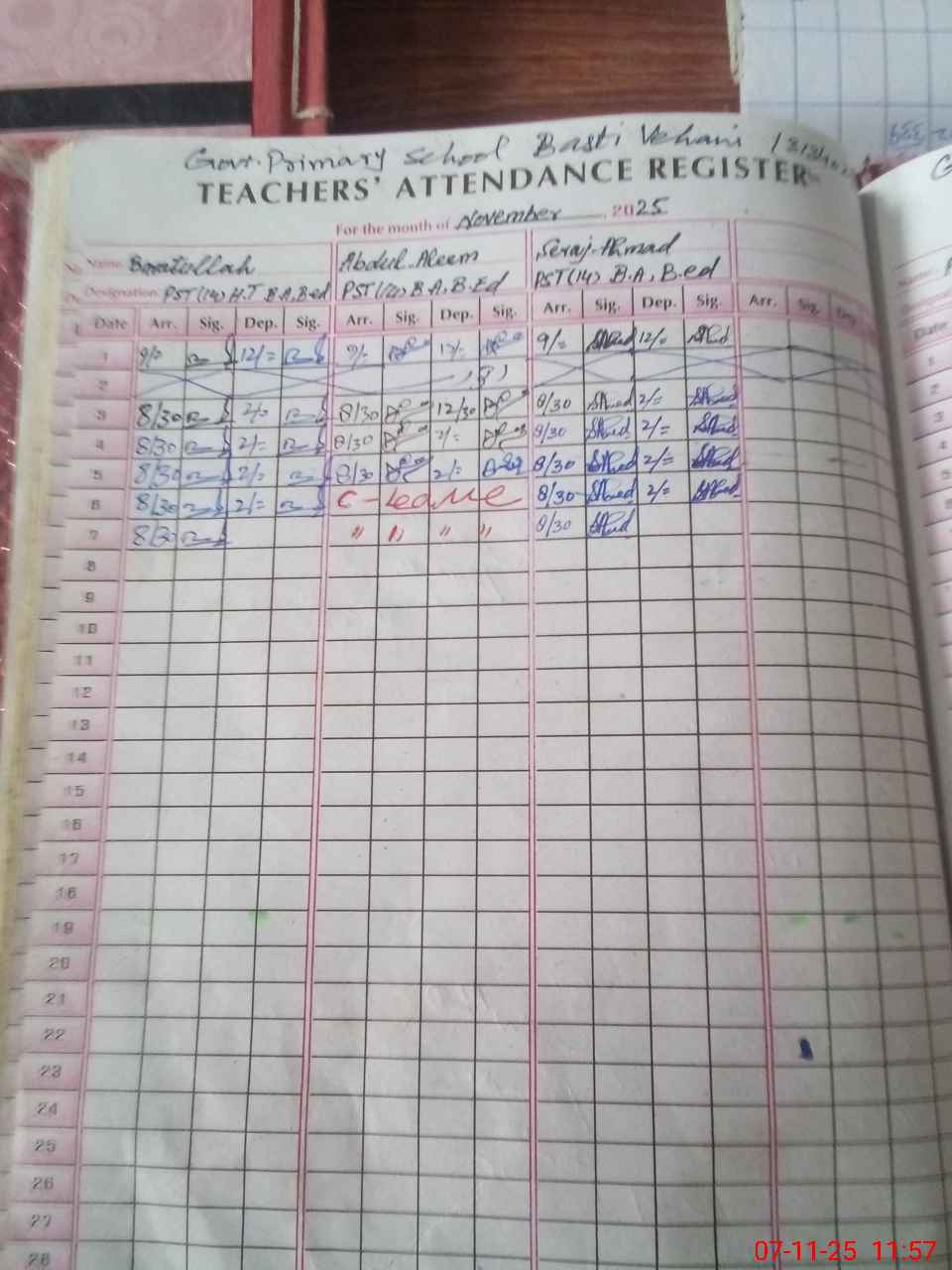 | CNIC | Full Name | Designation | R/C | Absence During Last Calender Month |