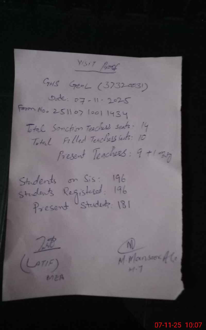 | Certified that this School was Inspected by the Undersigned MEA/DMO Today and the Information Stated Above is as Per Record. | |||||