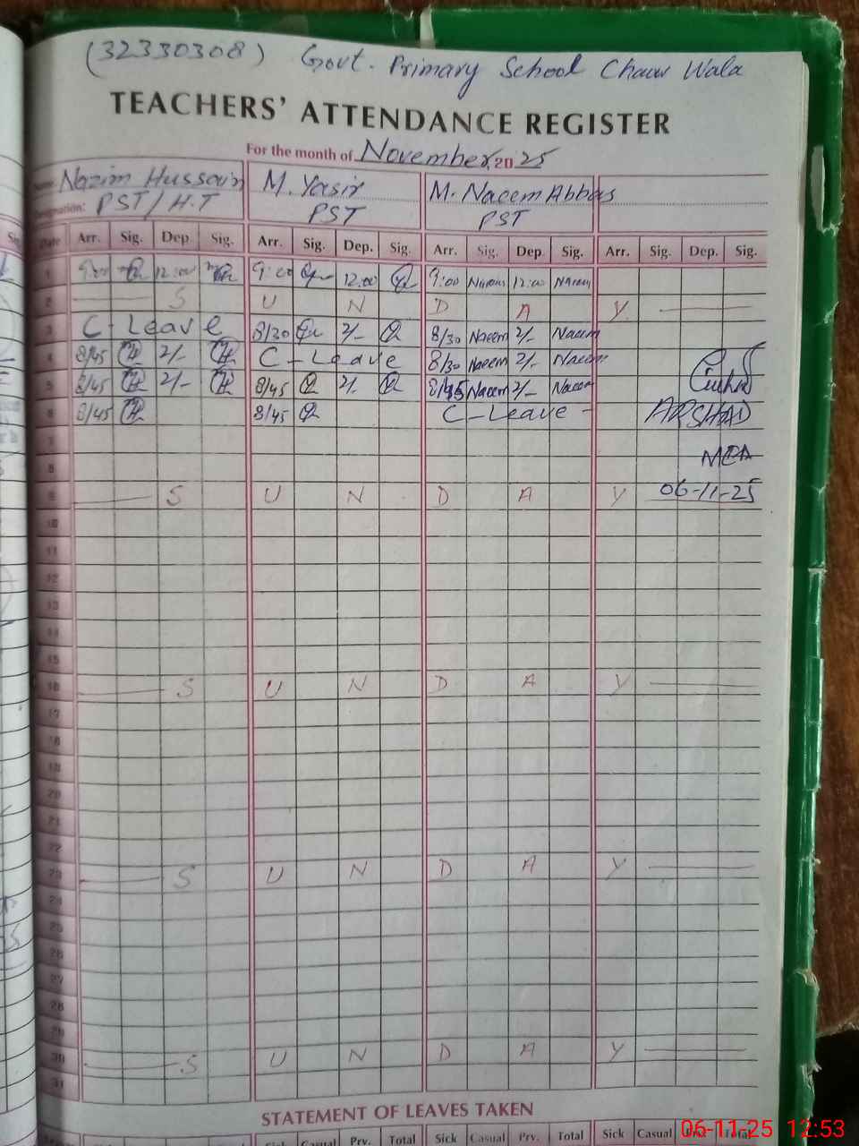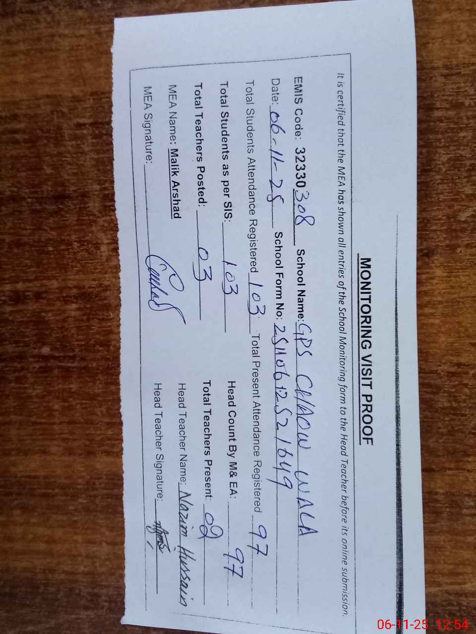 | EMIS Code: 32330308 | Name of School: GPS CHAOW WALA | |||