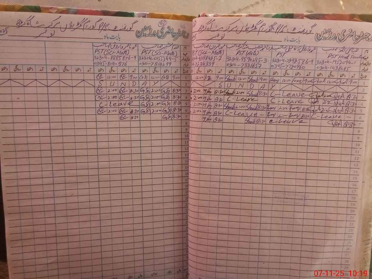 | CNIC | Full Name | Designation | R/C | Absence During Last Calender Month |