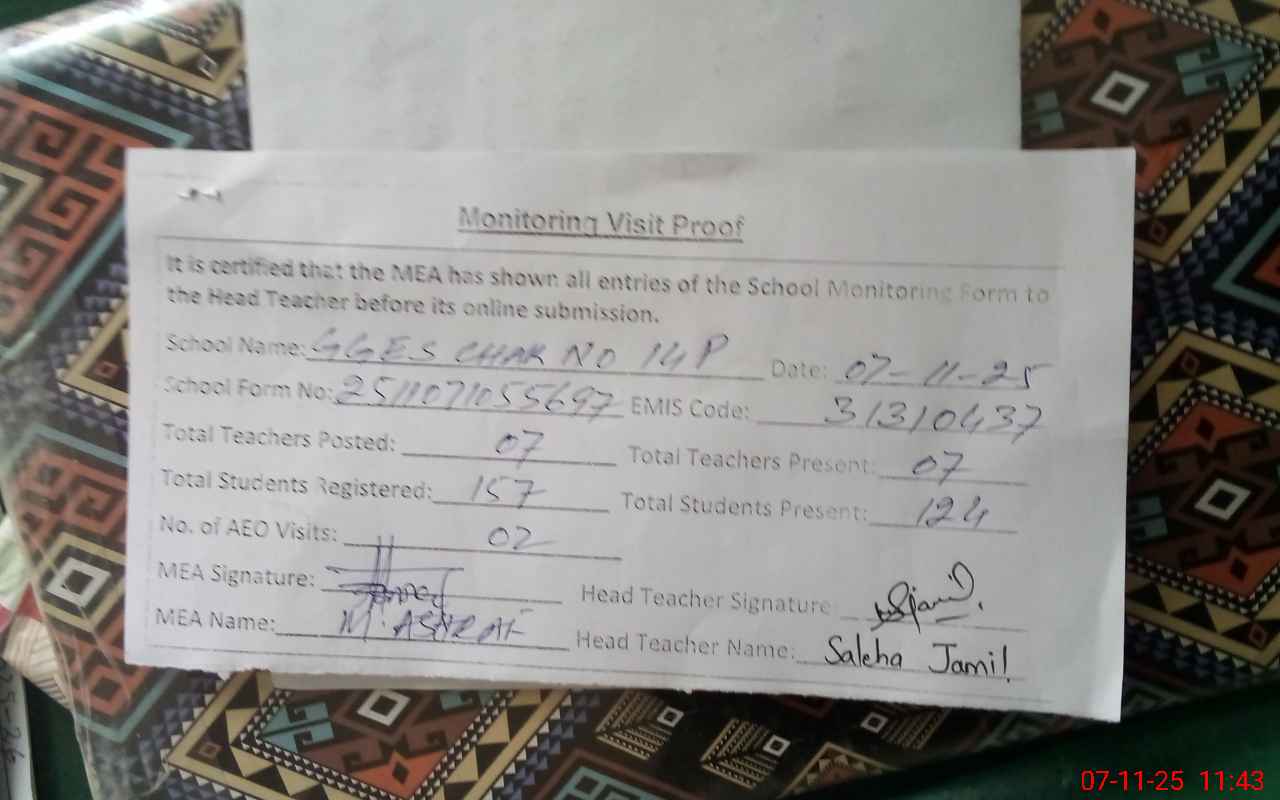 | EMIS Code: 31310437 | Name of School: GGES CHAK NO 14/P | |||