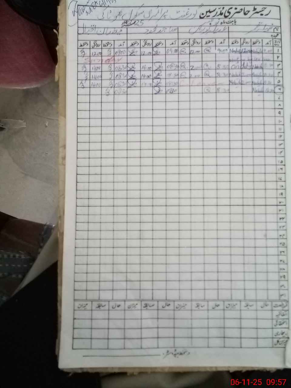 | CNIC | Full Name | Designation | R/C | Absence During Last Calender Month |