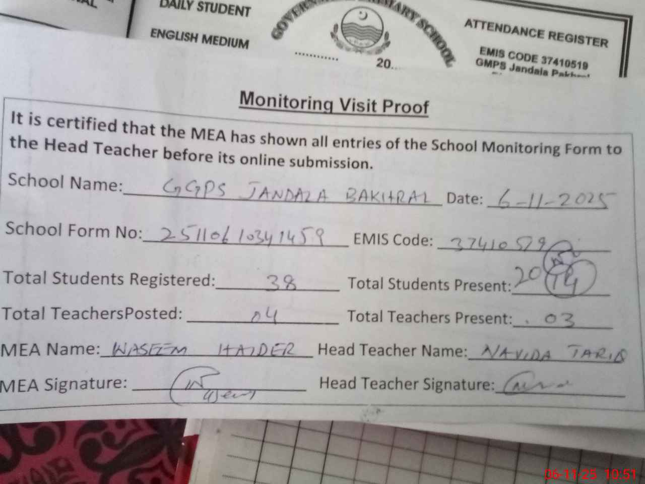 | EMIS Code: 37410519 | Name of School: GGPS JANDALA BAKHRAL | |||