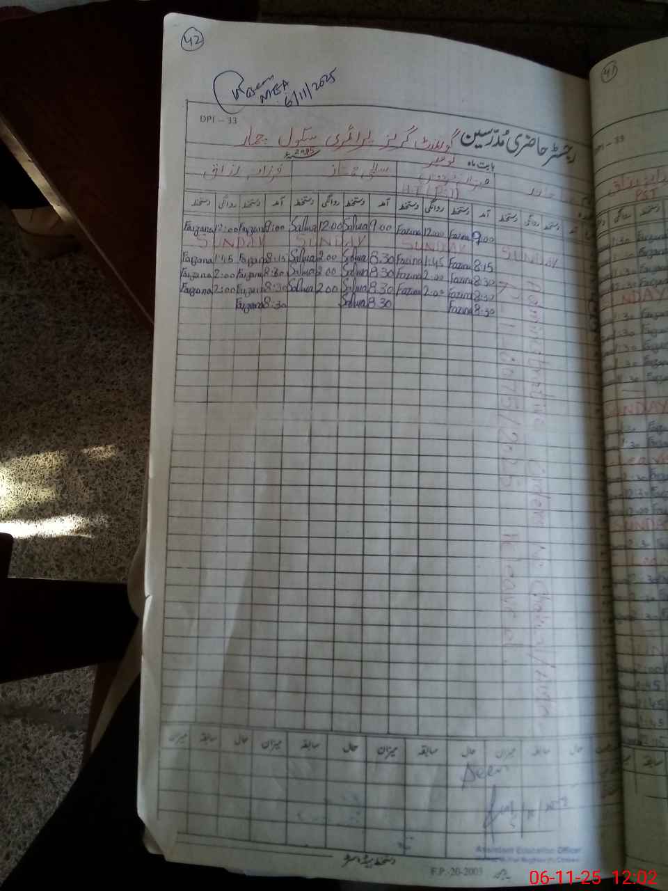 | School Visited by School Health & Nutrition Supervisor (No. of Visits) | 1 | Name1: | Iram Rasheed | Name2: | |