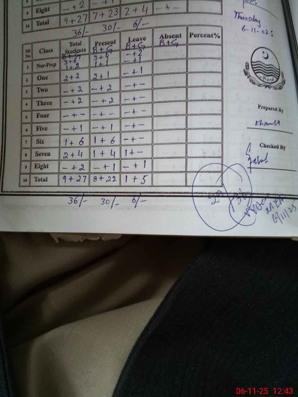 | Total Students Present | 7 | 0 | 2 | 3 | 2 | 2 | 0 | 1 | 6 | 5 | 1 | 29 | ||||