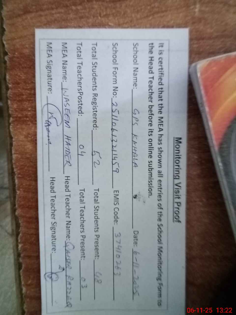 | Name: Qa**** Ra**** Designation: (School Headmaster's/Headmistress's) HEADMASTER Phone/Cell Number: 03**** |