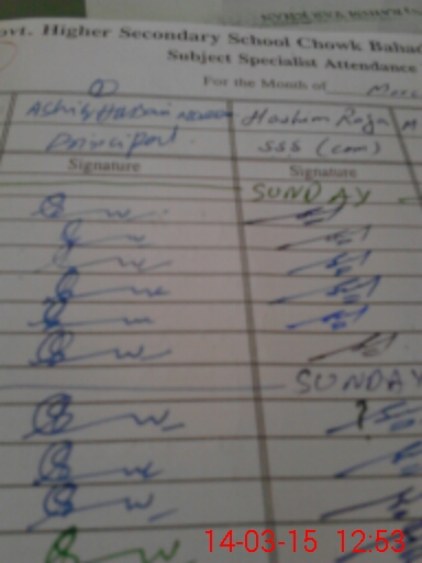 | Name: Sh**** Sa**** Ch Designation: (School Headmaster's/Headmistress's) Principal Phone/Cell Number: 03**** |