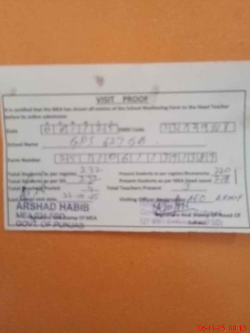 | EMIS Code: 33120311 | Name of School: GPS 627 GB DADU KA | |||