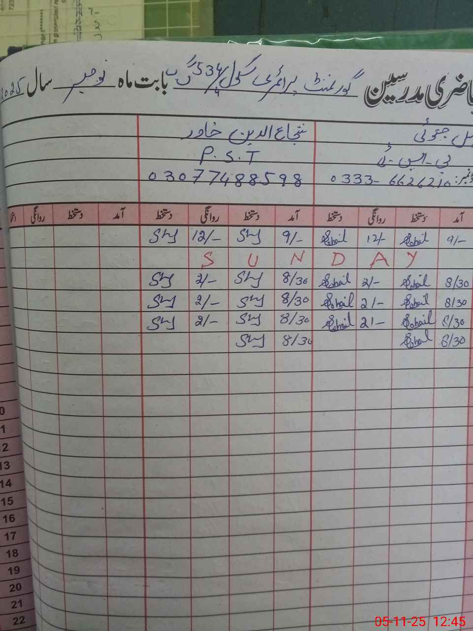 | Name: SO**** JA**** Designation: (School Headmaster's/Headmistress's) PST Phone/Cell Number: 03**** |