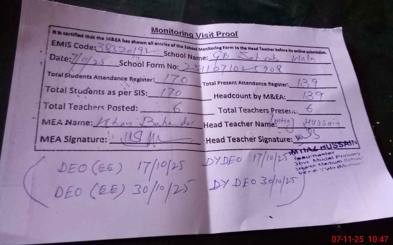 | Monitoring Date: 07-11-2025 | Start Time: 07-11-2025 10:12 AM | End Time: 07-11-2025 10:51 AM | Name of MEA: Kh**** Ba**** Kh**** | |