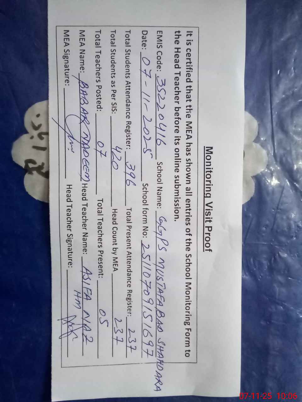 | EMIS Code: 35220416 | Name of School: GGPS MUSTFA ABAD SHAHDRA | |||