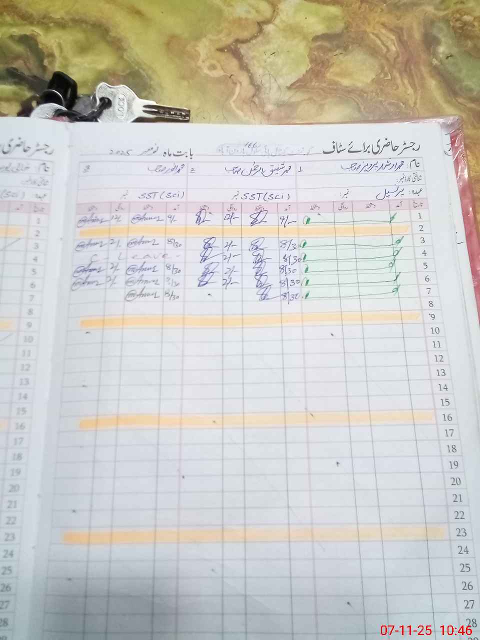 | Remarks (Use Separate Page if Required): Teacher Roban hadait pst is on causal leave | |||||