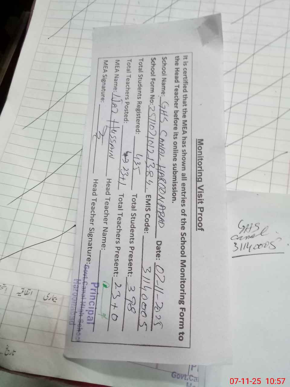 | EMIS Code: 31140005 | Name of School: GHS CANAL HAROON ABAD | |||