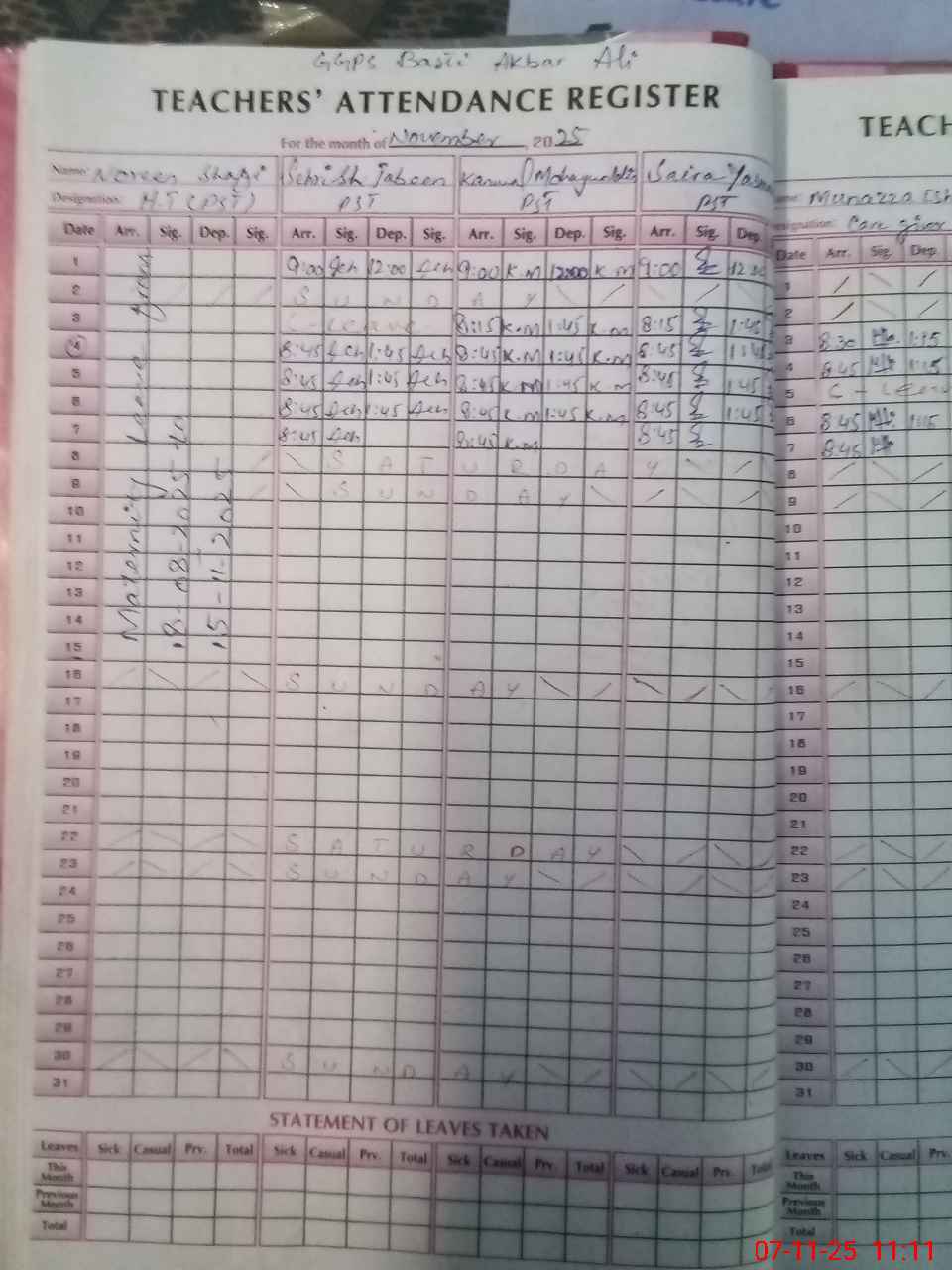 | Name: No**** Sh**** Designation: (School Headmaster's/Headmistress's) PST Phone/Cell Number: 03**** |