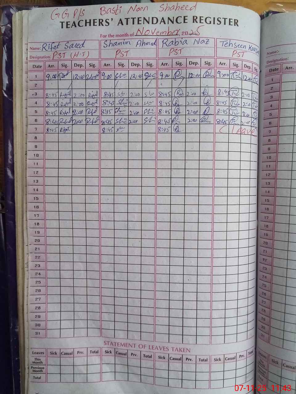 | Name: Ri**** Sa**** Designation: (School Headmaster's/Headmistress's) PST Phone/Cell Number: 03**** |