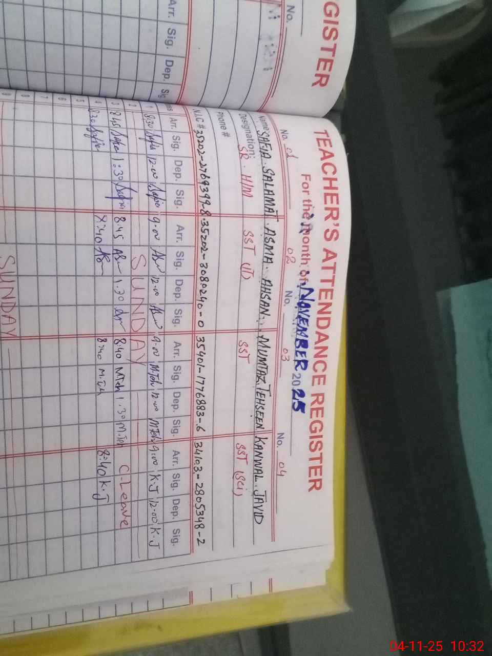 | Name: SA**** SA**** Designation: (School Headmaster's/Headmistress's) Senior Head Mistress Phone/Cell Number: 03**** |