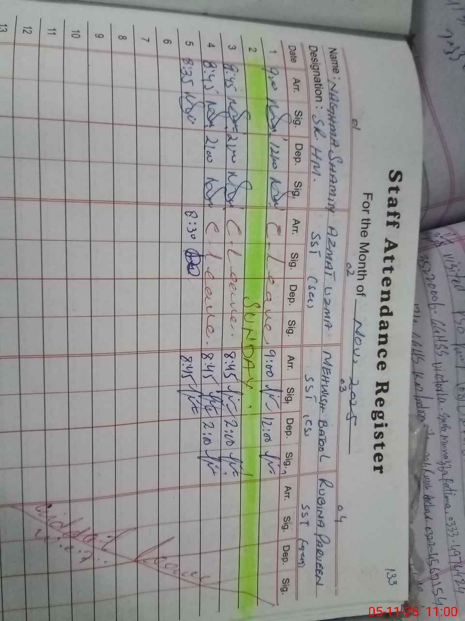 | Name: NA**** SH**** Designation: (School Headmaster's/Headmistress's) Senior Head Mistress Phone/Cell Number: 03**** |