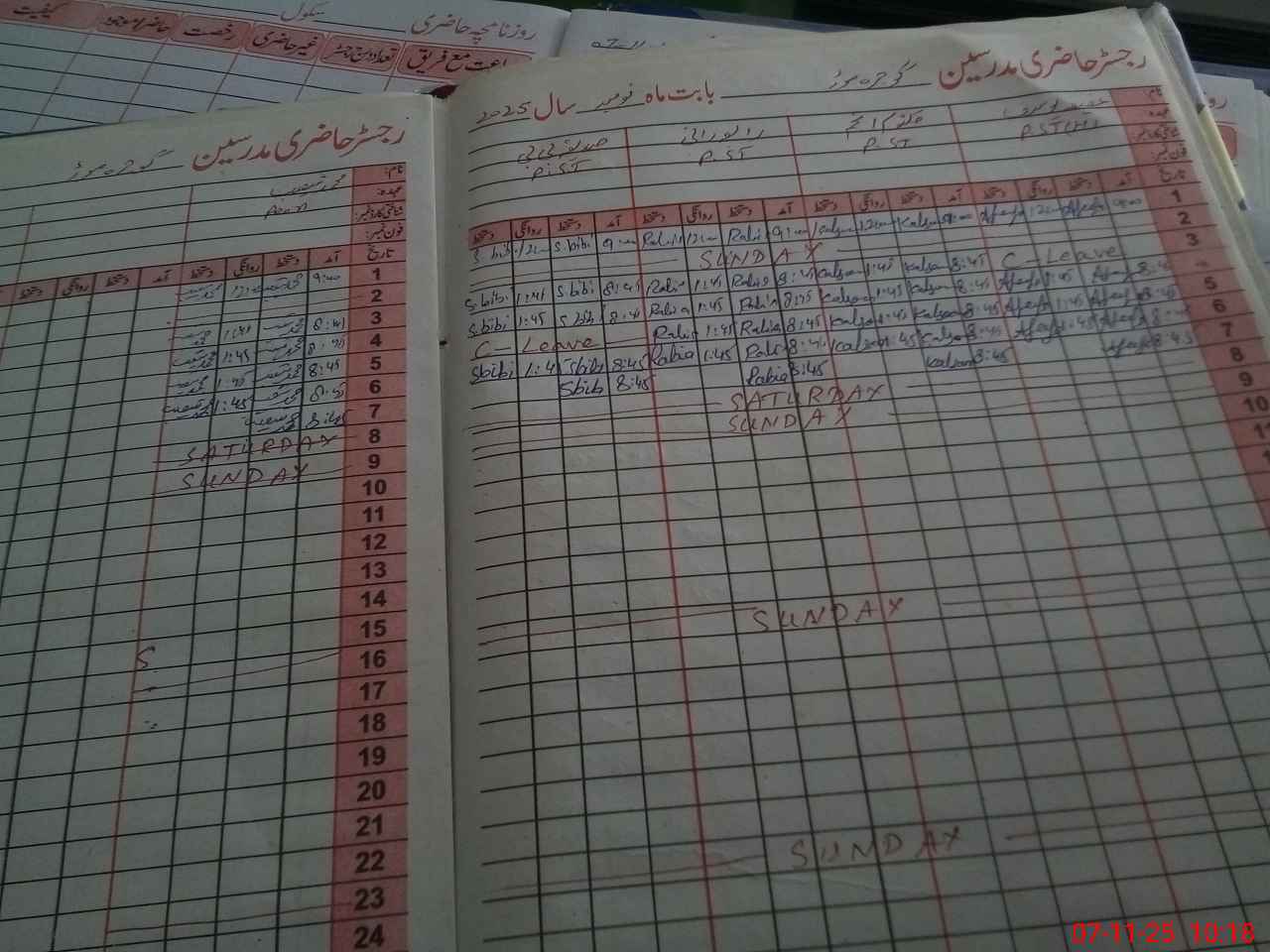 | CNIC | Full Name | Designation | R/C | Absence During Last Calender Month |