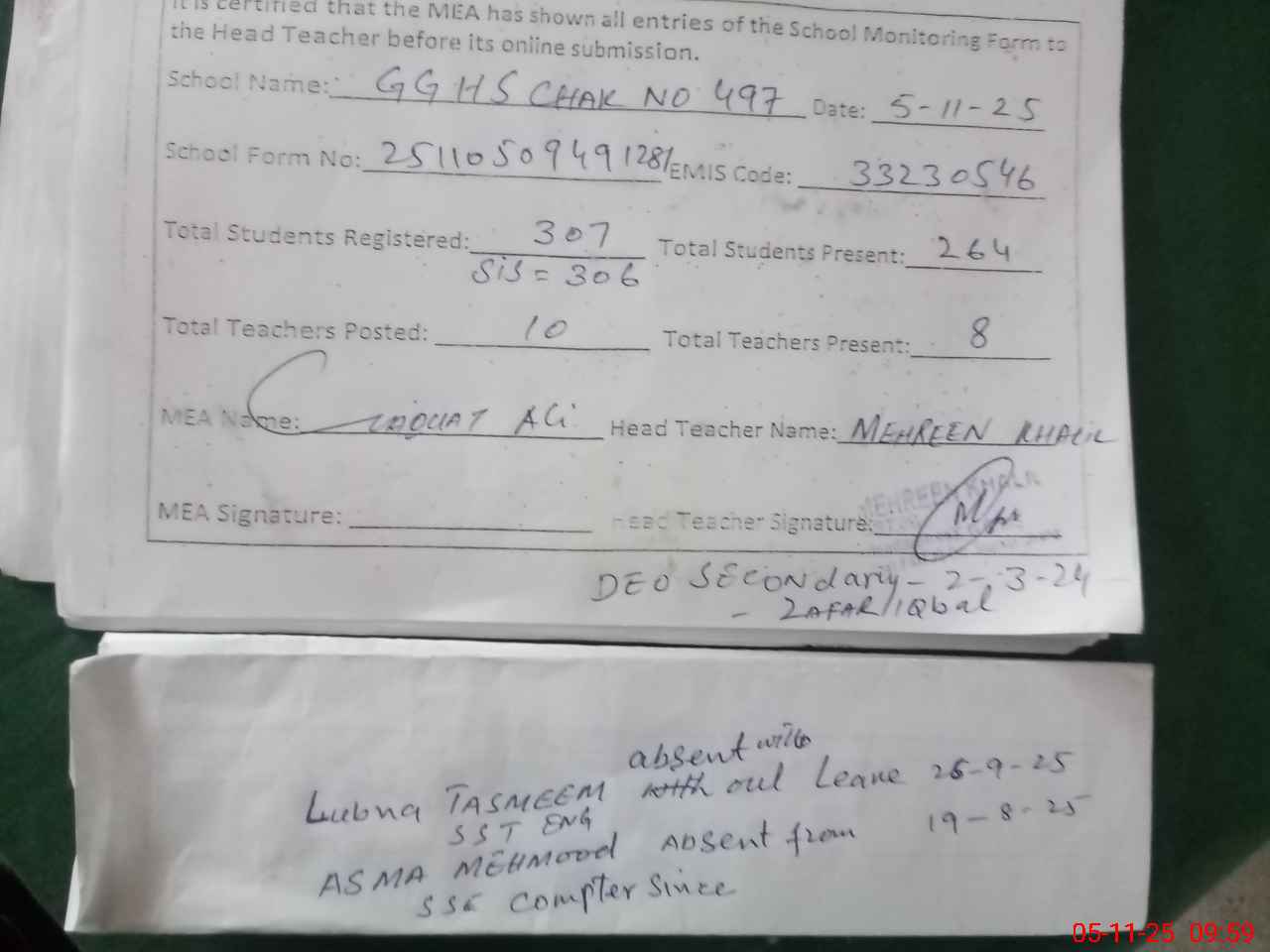 | EMIS Code: 33230546 | Name of School: GGHS CHAK NO. 497 JB | |||