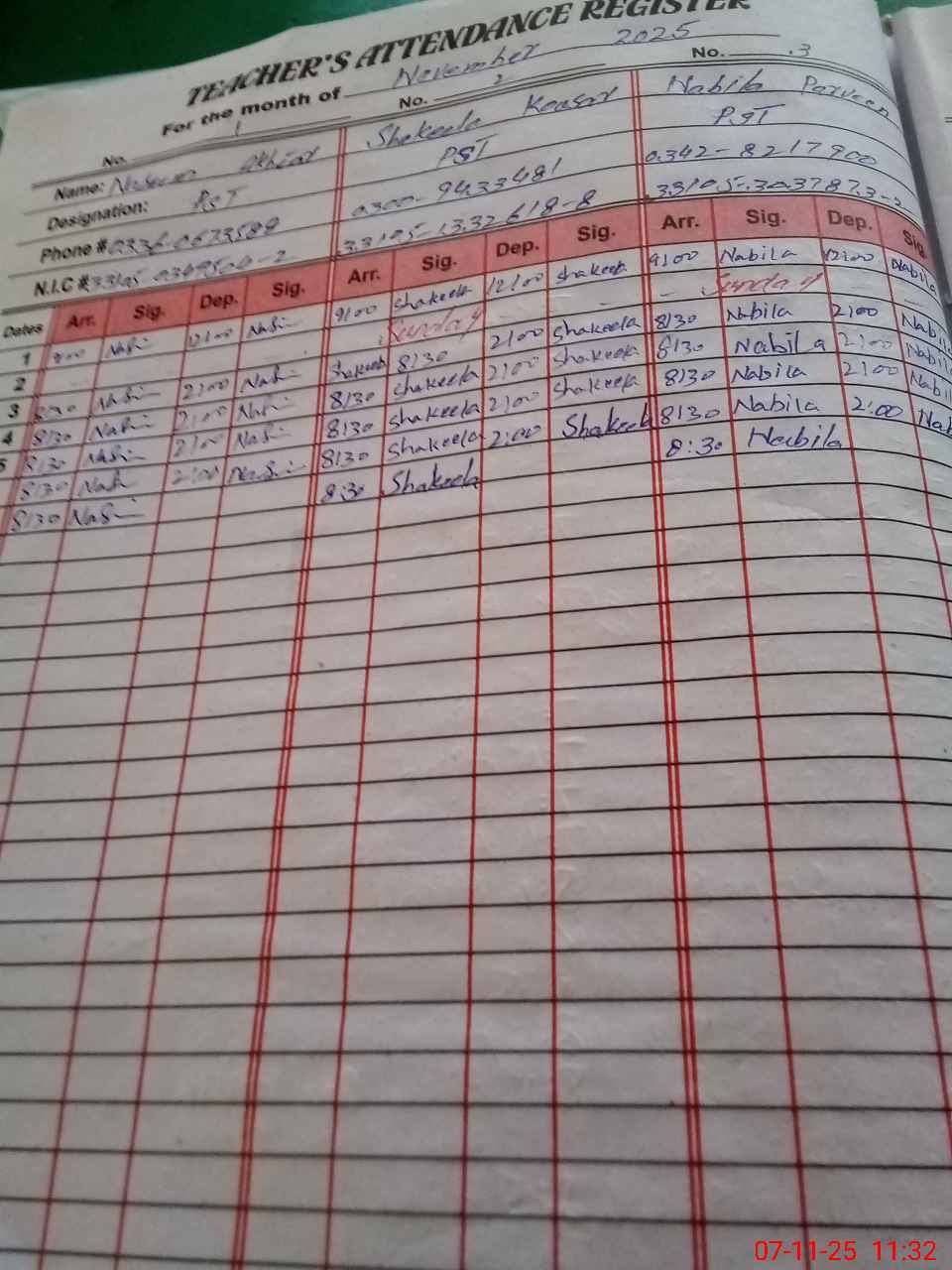 | Name: NA**** AK**** Designation: (School Headmaster's/Headmistress's) PST Phone/Cell Number: 03**** |