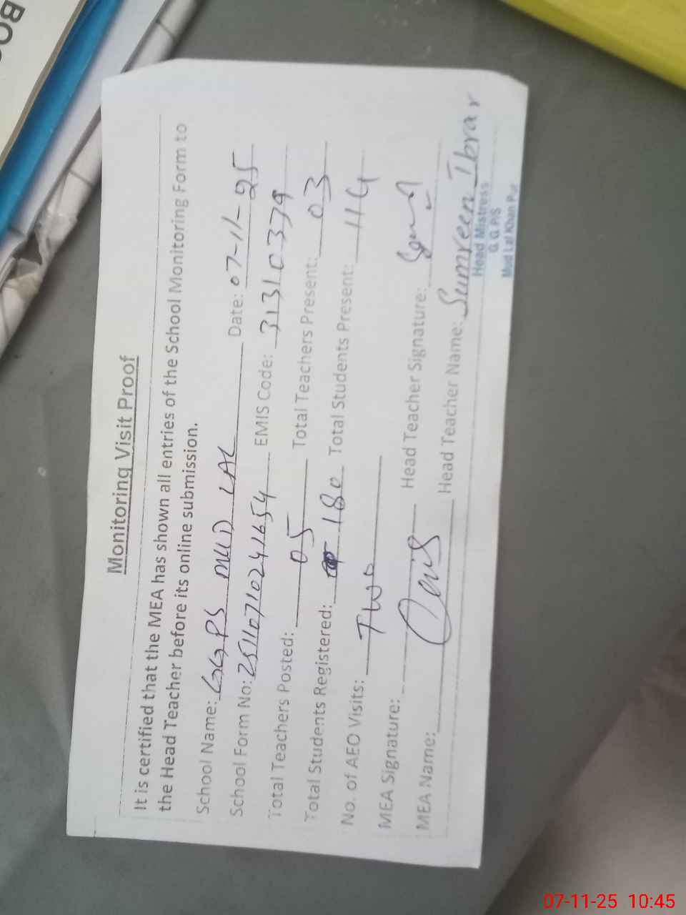 | EMIS Code: 31310339 | Name of School: GGPS MUD LAL | |||