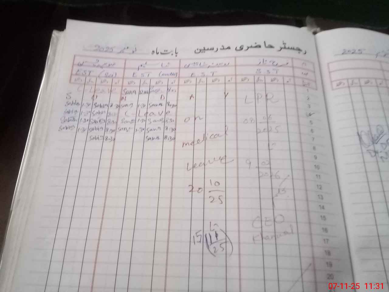 | Leave | Duty | Absent | Maternity | Medical | Ex- Pak |