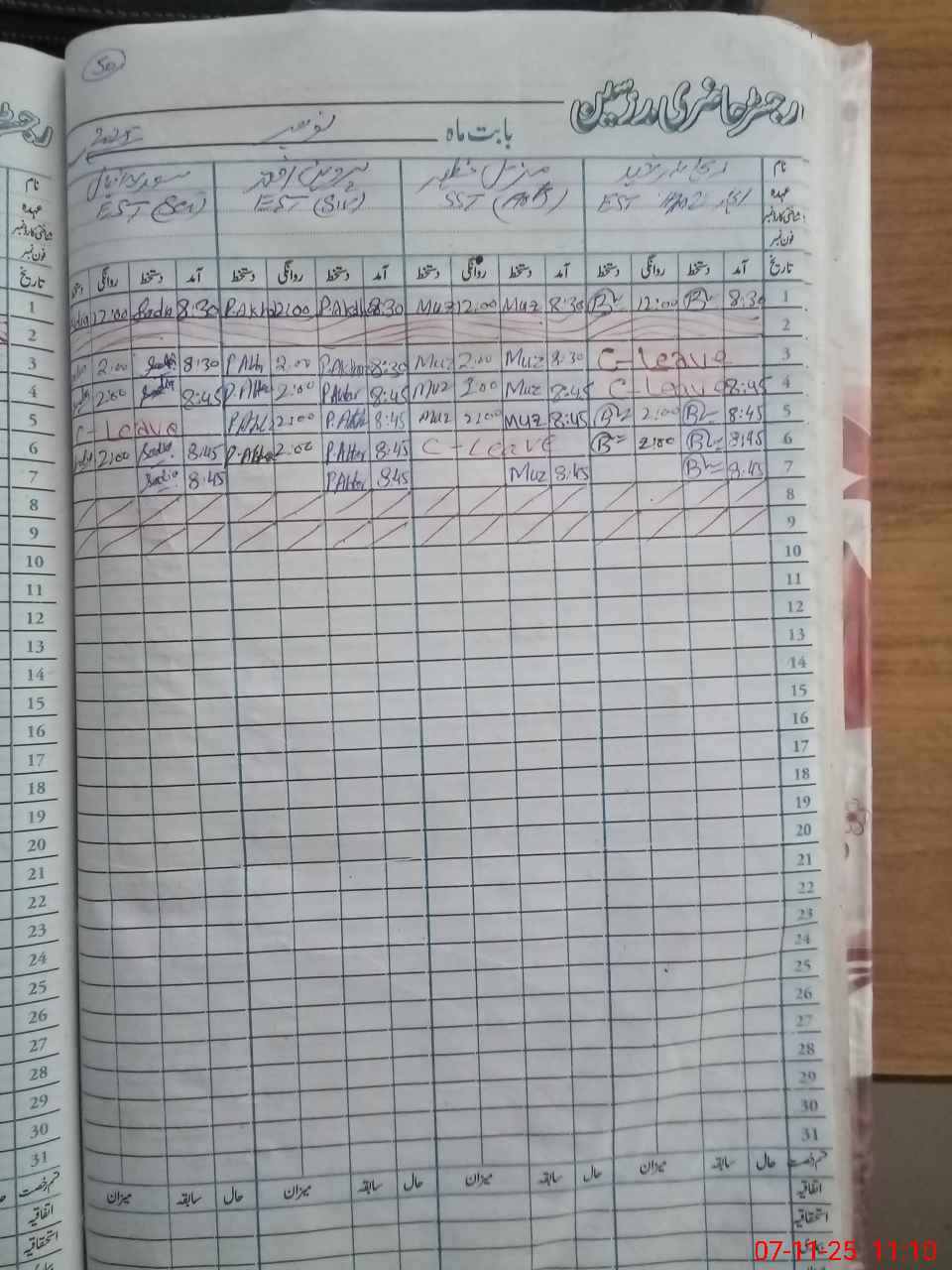 | CNIC | Full Name | Designation | R/C | Absence During Last Calender Month |